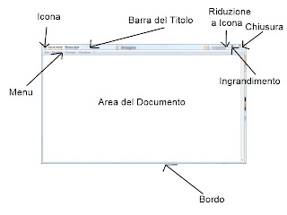 Non sto a spiegare qui le varie parti della finestra standard di base perché dovreste già saperlo, siete o no programmatori in C/C++? La figura mostra una finestra semplicissima con soltanto le parti che ritroviamo in quasi tutte le finestre, poi ovviamente possiamo averle anche bucate e rotonde.