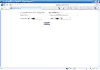 Completata questa operazione passiamo a creare una pagina di iscrizione richiedendo tutti i dati al nostro cliente, chiamiamo la pagina “inscli.htm” ed “inscli.php” nella quale andremo a raccogliere le informazioni ed inserirle all’interno del database.